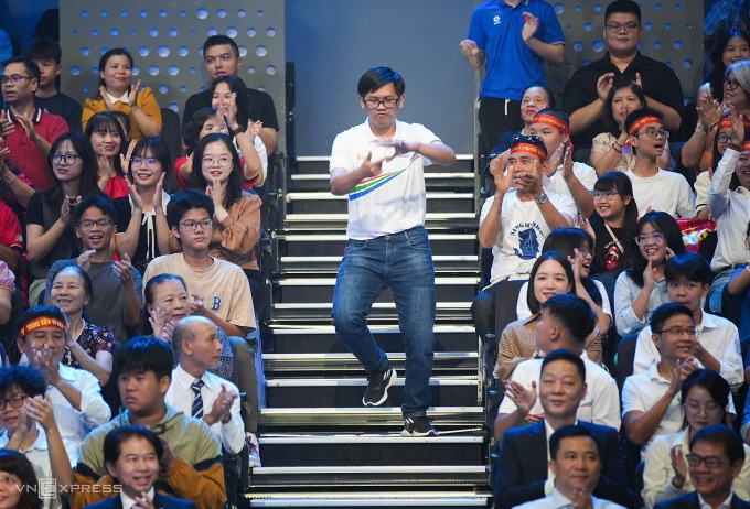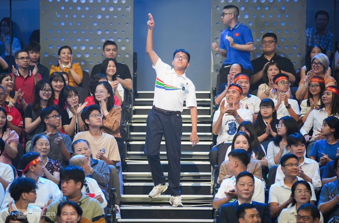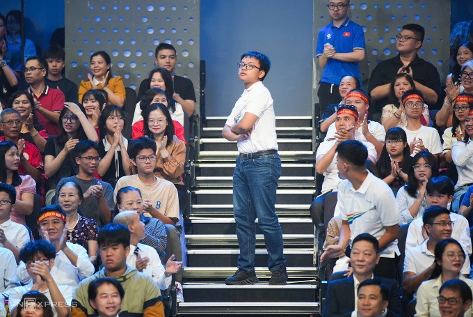 "Em nghe được trọn vẹn câu hỏi rồi. Chúc mừng Nguyên Phú", người dẫn chương trình dành lời khen ngợi cho Phú.