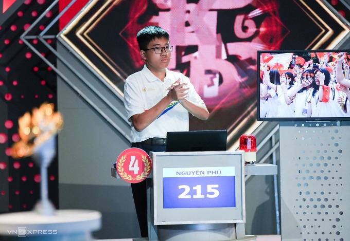 Với việc trả lời đúng, Phú giành thêm 30 điểm, nâng tổng lên 215, chỉ còn kém Phú Đức 20 điểm