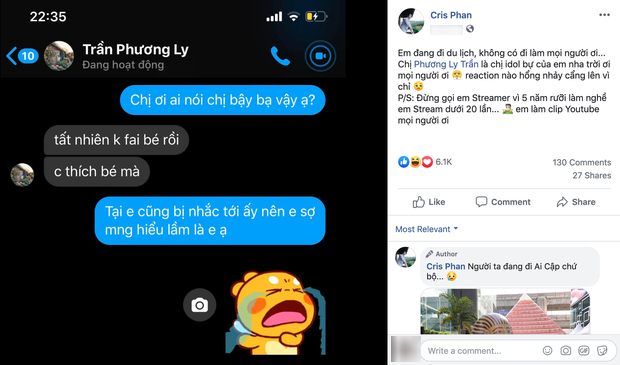 Để những hiểu lầm không đi quá xa, mới đây Cris Phan đã nhắn tin hỏi thẳng Phương Ly để chứng minh rằng mình không phải là người bị cô nàng nhắc tới. Đúng như dự đoán, Phương Ly nhanh chóng phủ nhận người mình "dằn mặt" không phải là Cris Phan và còn khẳng định cô rất yêu thích nam streamer.