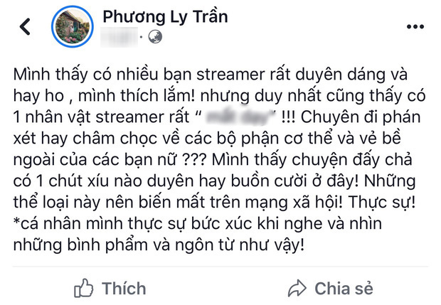 Vốn là một nữ ca sĩ khá kín tiếng trên mạng xã hội, chẳng bao giờ động chạm ai nên khi Phương Ly mới đây đăng tải status thể hiện sự bức xúc về một streamer "chuyên đi phán xét, châm chọc về vẻ ngoài của các bạn nữ" đã khiến cộng đồng mạng không khỏi tò mò. Giọng ca "Mặt trời của em" luôn được biết đến là người có tính cách vui vẻ, hòa đồng nên có vẻ như lời nói của streamer này thực sự đã làm cô nàng khó chịu.