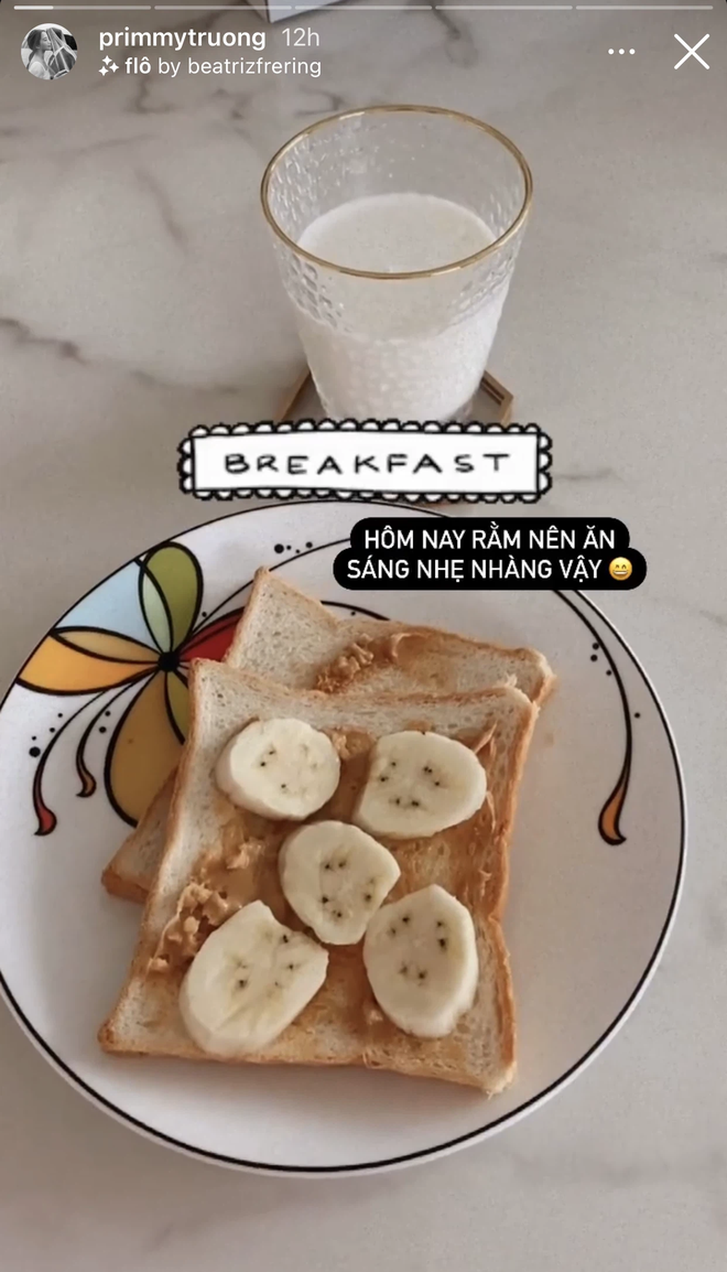Kể từ sau siêu đám cưới hoành tráng với rich kid nhà họ Phan, Primmy Trương tích cực vào bếp hơn. Những món từ dễ đến khó đều được cô nàng "giải quyết" tất và đảm bảo chất lượng, như sandwich hay nui thịt bằm.