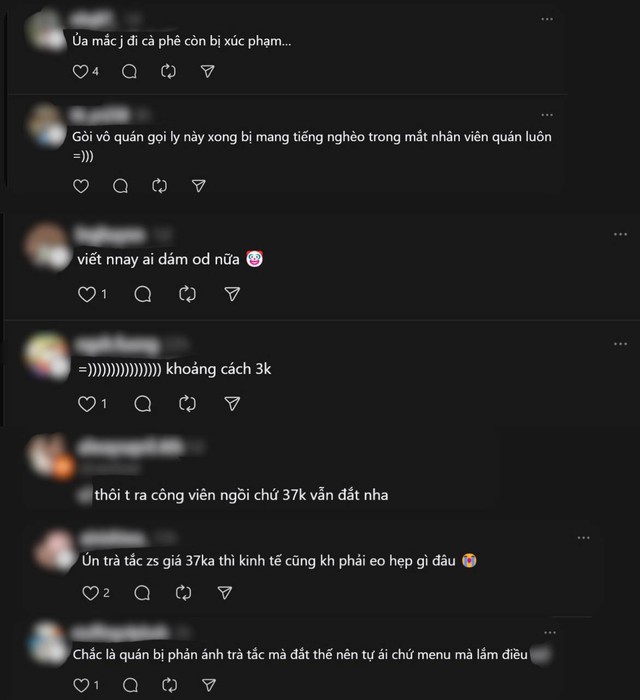 Dưới phần bình luận của bài đăng hầu hết đều cho rằng với những ai thích uống trà tắc sau khi đọc menu của quán chắc hẳn sẽ chẳng ai dám gọi món nước này vì sợ bị xếp vào loại người tài chính eo hẹp. “Gọi món này xong chắc nhân viên quán nhìn mình như kẻ nghèo, không có tiền vậy”.