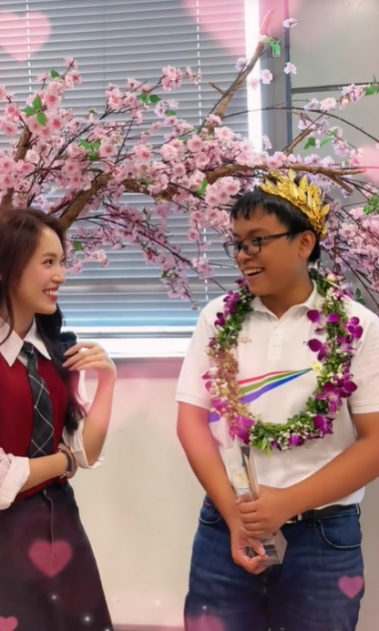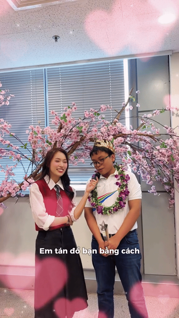 Đáng chú ý hơn, khi được Khánh Vy hỏi về gu “người trong mộng”, Phú Đức cũng không ngần ngại khẳng định mình đã có bạn gái. Không những vậy, câu trả lời về cách cưa đổ người yêu của Phú Đức cũng phải khiến dân tình nể phục: “Em tán đổ bạn bằng cách sử dụng accent (giọng nói) tiếng Anh của em”.