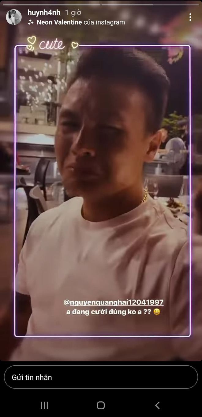 Chuyện tình yêu của Quang Hải và Huỳnh Anh luôn nhận được sự quan tâm lớn của cộng đồng mạng. Mỗi động thái của họ trên trang cá nhân đều thu hút được sự chú ý. Mới đây, trong ngày sinh nhật của mình, Huỳnh Anh đã nhận được món quà vô cùng đắt giá từ Quang Hải. Cô nàng hào hứng khoe quà trên trang cá nhân, và cũng không quên troll bạn trai khi quay lại biểu cảm "khóc mếu" của chàng tiền vệ của CLB Hà Nội sau khi trao quà.