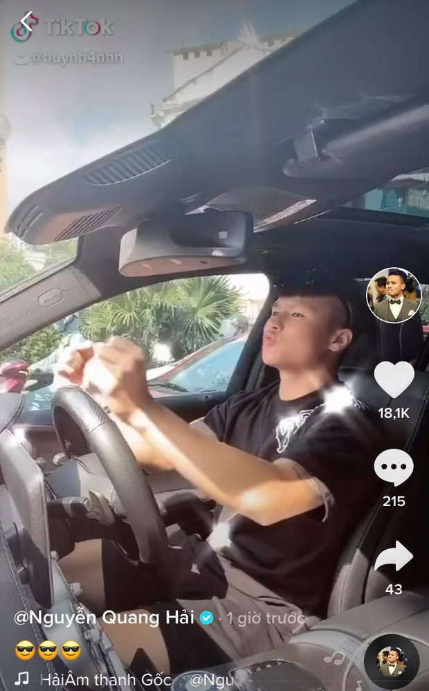 Giữa cơn bão thông tin tiêu cực về chuyện đời tư, tiền vệ Quang Hải lại thể hiện tinh thần vui vẻ, lạc quan như chẳng hề gì. Trên một mạng xã hội video, đêm 18/5, Quang Hải chia sẻ một clip ngắn khi anh dừng xe chờ đèn đỏ. Cầu thủ sinh năm 1997 ngồi trong xế hộp đắt tiền, hào hứng khua tay quẩy theo nhạc như có điều gì thích thú lắm. Chiếc kính đen đeo trên đỉnh đầu trong một động tác đã rơi xuống khiến Hải "con" càng ngầu hơn đúng chất dân chơi đây rồi.