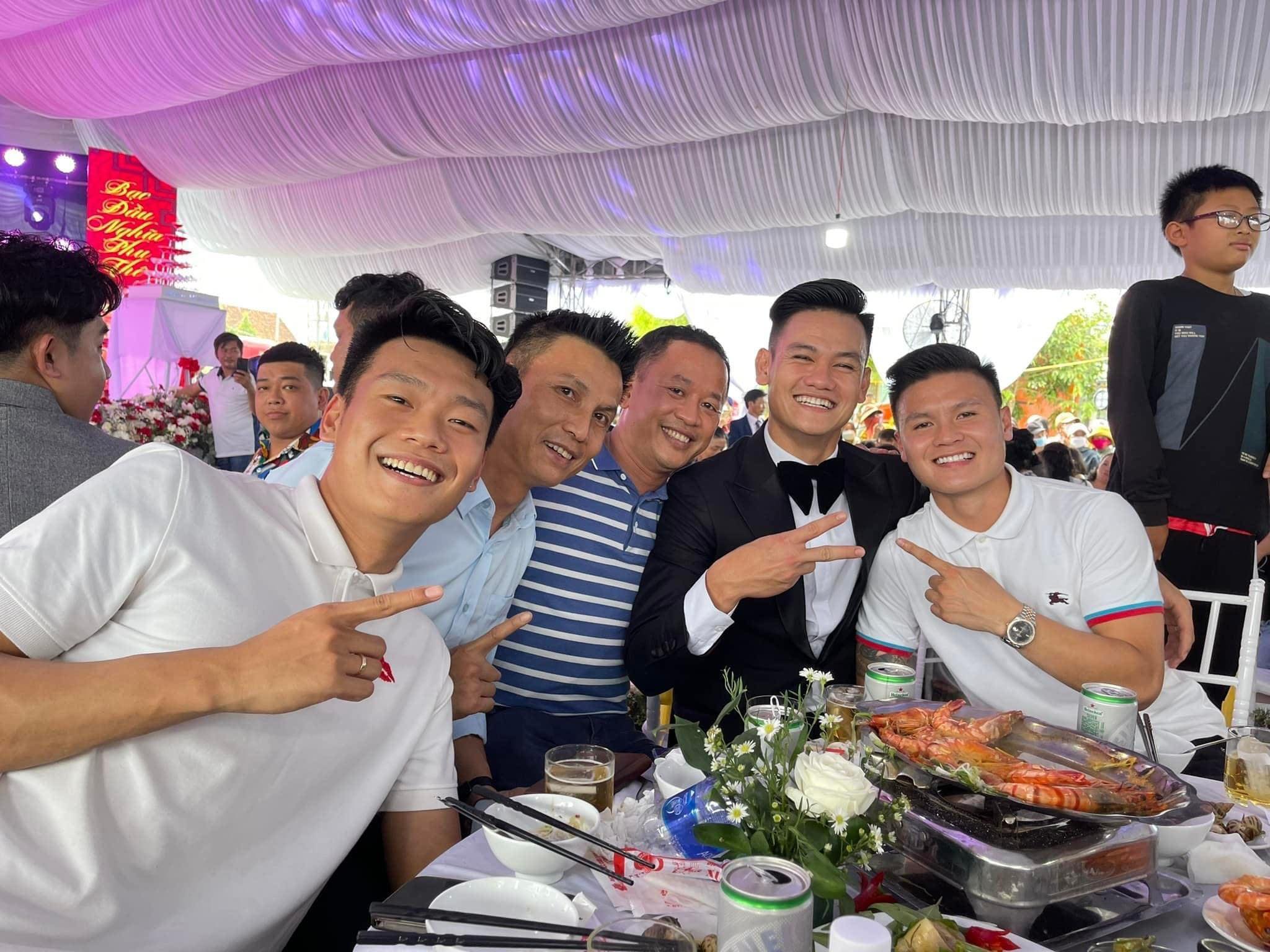 Trong số các khách mời tham dự lễ cưới của hậu vệ tuyển Việt Nam, Nguyễn Quang Hải là một trong những nhân vật nhận được nhiều sự chú ý. Xuất hiện tại lễ cưới đồng nghiệp, Quang Hải ăn mặc giản dị với chiếc áo phông trắng, quần đen đi cùng bạn gái xinh đẹp Chu Thanh Huyền.