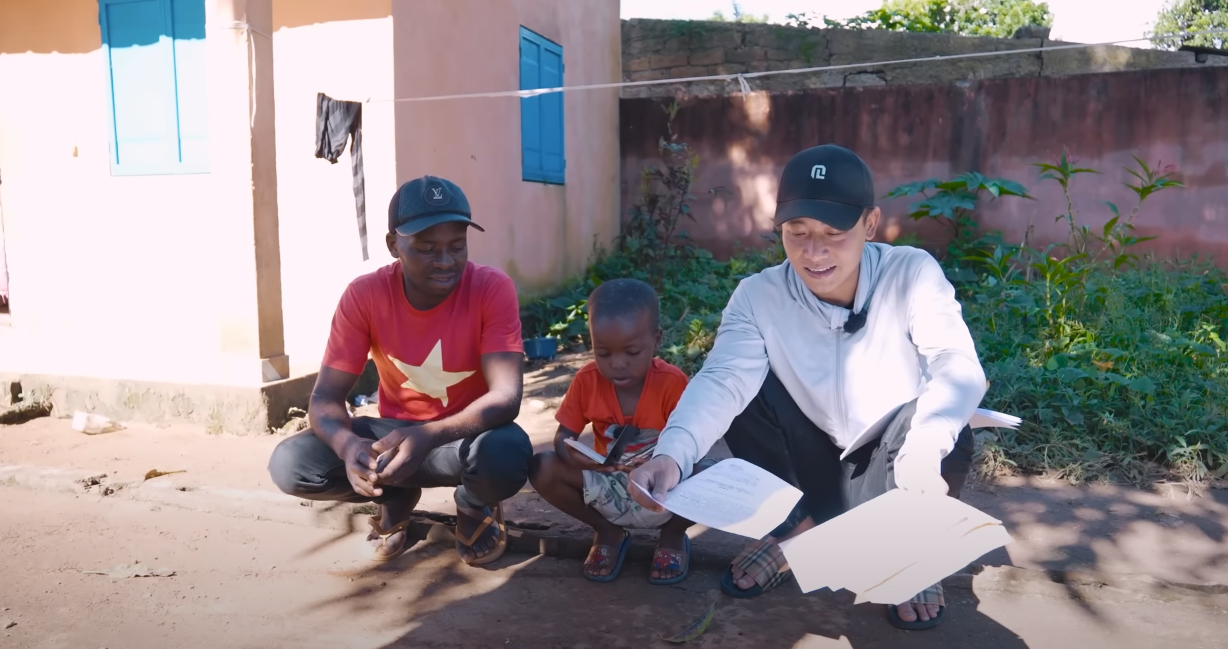 Trong đoạn video mới nhất đăng tải trên kênh Youtube ngày 20/3, Quang Linh cho biết đầu tháng 4 sắp tới, anh sẽ về Việt Nam cùng Lôi Con - "cục cưng" của cả team châu Phi. Cậu bé đã gắn bó với Quang Linh cũng như những anh em Việt Nam ở châu Phi được hơn 3 năm. Lôi Con được Quang Linh coi như con nuôi, chăm sóc từng li từng tí, bảo ban học hành và dạy cả tiếng Việt. Thế nên không có gì quá ngạc nhiên khi cậu nhóc được tạo điều kiện về thăm thú quê hương của các chú trong team.