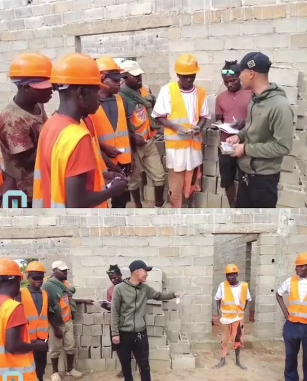 Chứng kiến các công nhân xây dựng miệt mài làm việc, đạt hiệu quả tốt, 9X đã quyết định trả lương kèm theo đó là tiền thưởng.