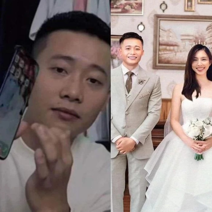 Cụ thể, ảnh nền điện thoại Quang Linh trông giống y như bức ảnh cưới được các "thuyền trưởng" ghép mặt anh với Thùy Tiên trước đó. Quang Linh bảnh bao trong bộ vest lịch lãm, còn Thùy Tiên hóa nàng thơ trong bộ váy cưới màu trắng tinh khôi.