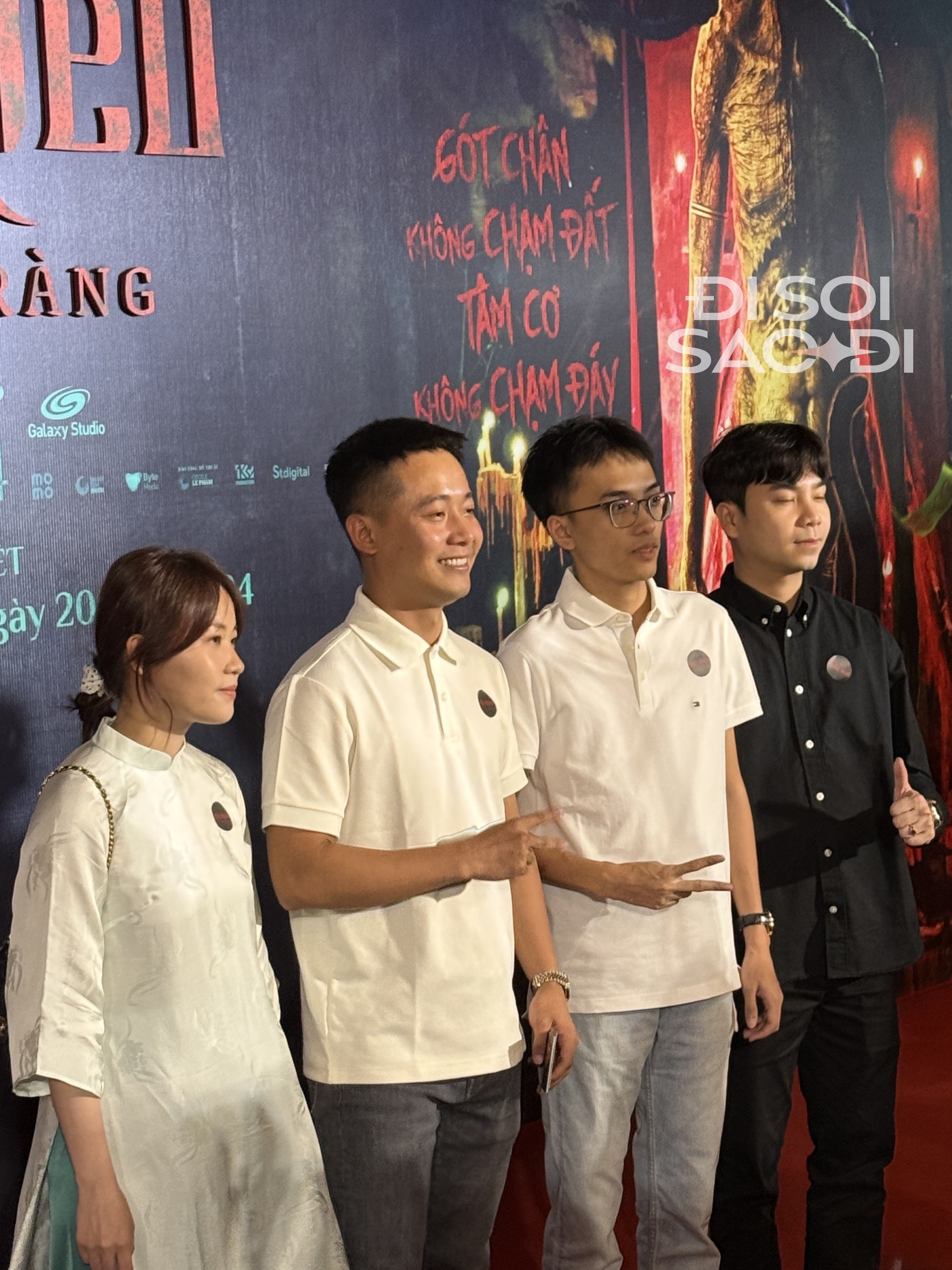 Về phần team Quang Linh, anh chàng và mọi người cũng tươi cười với nàng Hậu. Song dường như chưa quen với việc đi thảm đỏ và trở thành tâm điểm chú ý tại sự kiện nên cả team vẫn có phần ngại ngùng.
