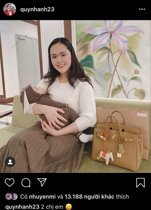 Đây là lần đầu tiên Quỳnh Anh đăng ảnh bế con trai ra ngoài. Cô nàng diện một bộ đồ với màu nâu và trắng là chủ đạo, tone sur tone với con trai khiến dân tình xuýt xoa. Rất nhiều lời khen như "chị Quỳnh Anh càng ngày càng xinh" hay "xing quá chị ơi" xuất hiện dưới phần bình luận. Ông bố Duy Mạnh cũng không quên thả tim nhiệt tình cho hai mẹ con Quỳnh Anh. Nàng WAGs để dòng trạng thái ngắn gọn: "Hai chị em".