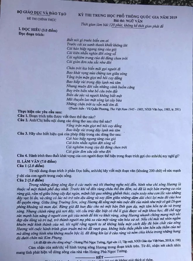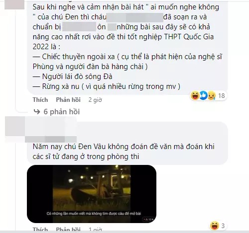 Cụ thể, nhiều trang cộng đồng dựa trên câu hát "Ngày nào chợt nhớ dòng sông" dự đoán đề thi năm nay khả năng cao sẽ rơi vào các bài Người Lái Đò Sông Đà, Ai Đã Đặt Tên Cho Dòng Sông và Chiếc Thuyền Ngoài Xa. Cả 3 tác phẩm đều có hình tượng dòng sông, khá trùng khớp với câu rap của Đen Vâu.