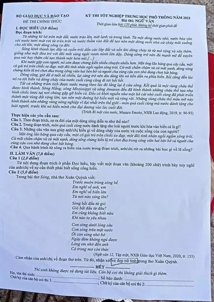 Nhiều người còn nhớ kỳ thi THPT Quốc gia năm 2021, Đen Vâu ra mắt ca khúc Trốn Tìm với lyrics: "Anh đi tìm thì em trốn, anh đi trốn em không tìm. Lòng em không gợn sóng cuối cùng anh mất công chìm", năm ấy đề thi rơi vào tác phẩm Sóng của nữ sĩ Xuân Quỳnh.