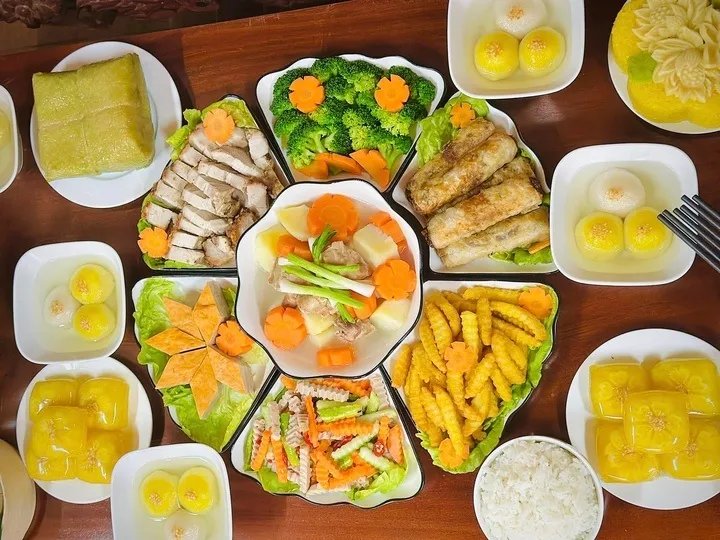 Xu hướng cúng cỗ chay cũng ngày càng phổ biến khi nhiều người muốn tìm về sự thanh tịnh. Mâm cỗ này thường sử dụng các nguyên liệu thiên nhiên như nấm, đậu hũ và rau củ mùa xuân để chế biến thành những món ăn thanh nhẹ như nem chay, canh nấm hay đậu hũ chiên sả. Đặc biệt, bát chè trôi nước trong mâm cỗ chay chính là lời nguyện cầu cho một năm mới trôi chảy, gia đình luôn đoàn viên và mọi sự đều viên thành.