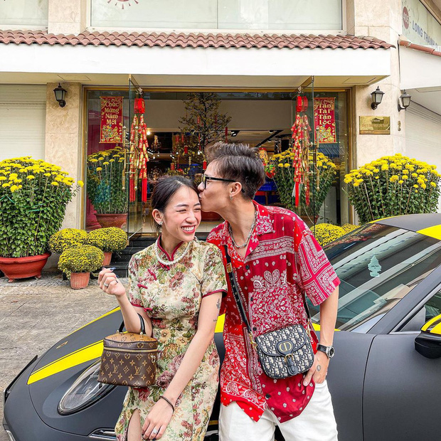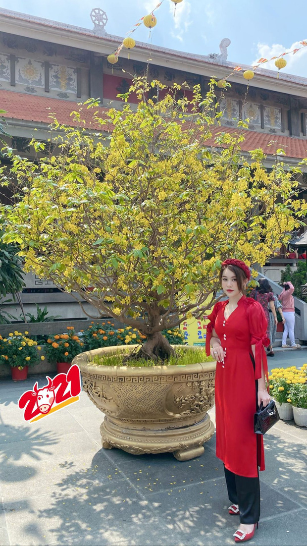 Trong khi đó con gái của Minh Nhựa và vợ đầu - Joyce Phạm thì ăn Tết cùng chồng. Cả hai đăng loạt ảnh ngập đồ hiệu và background siêu xe trong ngày đầu năm mới, sau đó "biến hình" mặc đồ chùa đi lễ đầu năm.