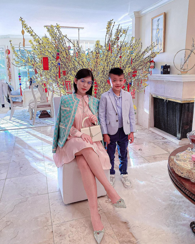 Đầu tiên phải kể đến thiên kim tiểu thư Tiên Nguyễn và thiếu gia Hiếu Nguyễn của nhà Johnathan Hạnh Nguyễn. Tết về không có gì nhiều, lên đồ truyền thống chụp ở toà lâu đài triệu đô view sông Sài Gòn thôi. Nhìn chung cũng giản dị.