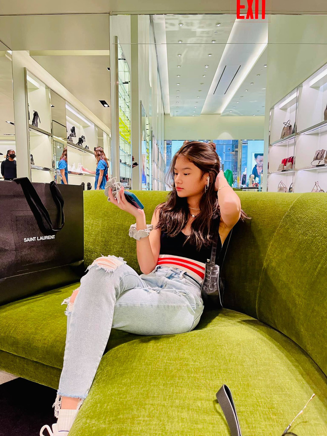 Ngoài ra, Trần Bảo Sơn cũng hé lộ luôn việc đầu tiên khi cả hai đến Mỹ đó là dẫn con gái cưng đi sắm đồ hiệu luôn và ngay. Nhìn loạt ảnh Bảo Tiên ngồi trong store thần thái này ai làm lại đây?