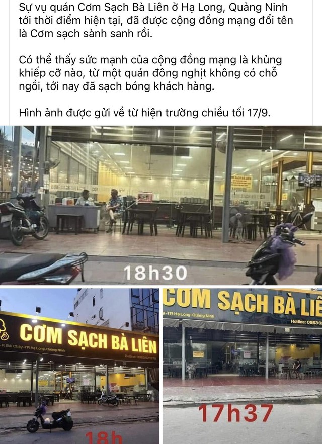 Tuy nhiên, chia sẻ với báo Dân trí, bà Nguyễn Thị Lan, chủ quán cơm sạch bà Liên cho biết không rõ những bức ảnh trên MXH được chụp vào thời điểm nào. Bà Lan khẳng định quán vẫn đang hoạt động bình thường, chưa đóng cửa và lượng khách tới quán vẫn khá đông. Khách của quán chủ yếu là khách quen, người địa phương.