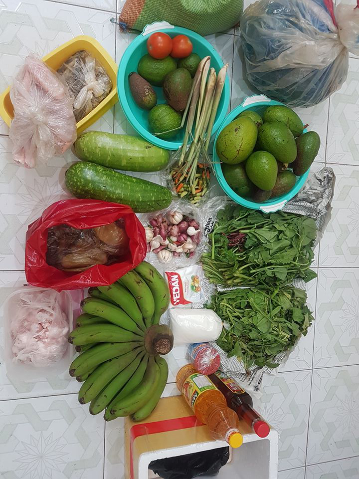 Mở thùng đồ của mẹ mà vừa mừng vừa rơi nước mắt. Mẹ gói từ miếng dưa cải, gói từng trái ớt nhỏ cẩn thận... đến cả mấy cọng hành sau vườn cũng nhổ nốt gửi đi. Rồi thì mắm muối, rau, bơ, chuối,... Tất cả đồ là mẹ trồng cả. Thịt gà, thịt heo mẹ cũng để đông lạnh rồi bỏ thùng xốp cho kĩ rồi gửi lên.