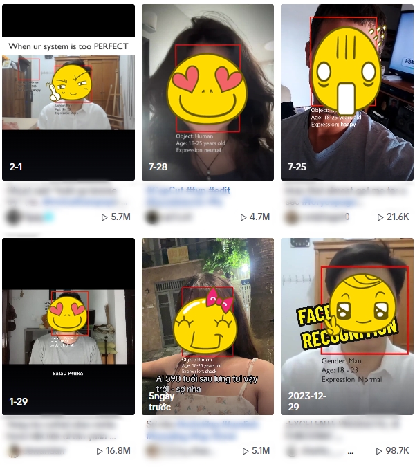 Filter có tên “facial detection” (tạm dịch: nhận diện khuôn mặt) - do một nhà sáng tạo nội dung có gần 50 nghìn follower tạo ra, thu hút hơn 700 nghìn người hưởng ứng. Khác với các dạng filter nhận diện khuôn mặt, đoán độ tuổi khác, sau khi có một khung hình dự đoán độ tuổi và trạng thái của bạn thì lại xuất hiện thêm một khung hình khác tương tự, rơi vào một đồ vật bất kỳ, với nội dung: “Đối tượng: Không rõ; Tuổi: 560-590 tuổi; Biểu hiện: Tức giận” khiến nhiều người dùng hoang mang.