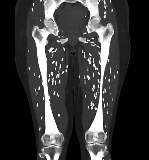 Tiến sĩ Sam Ghali, bác sĩ cấp cứu tại Đại học Florida (Mỹ) mới đây đã chia sẻ trường hợp nữ bệnh nhân mắc bệnh sán dây lợn. Bệnh này xuất hiện khi ấu trùng của loài sán dây xâm nhập vào các mô như cơ hoặc thậm chí là não. Thông qua việc chụp cắt lớp, có thể thấy chúng ký sinh trong cơ thể với hình dáng như những hạt gạo màu trắng.