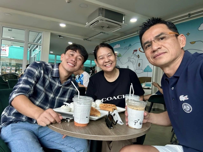 Đáng chú ý, Minh Vương còn có dịp hội ngộ cùng 3 cô con gái nhà huấn luyện viên đang dẫn dắt CLB CAHN. Trong đó cô con gái út nhà huấn luyện viên Kiatisuk còn từng có dịp phỏng vấn trực tuyến chàng cầu thủ này. Bức ảnh Minh Vương và gia đình thầy nhanh chóng gây sốt cộng đồng mạng. Dân tình tích cực đẩy thuyền cầu thủ quê Thái Bình với con gái của huấn luyện viên.