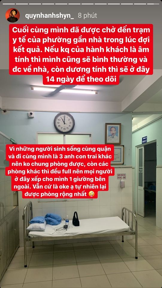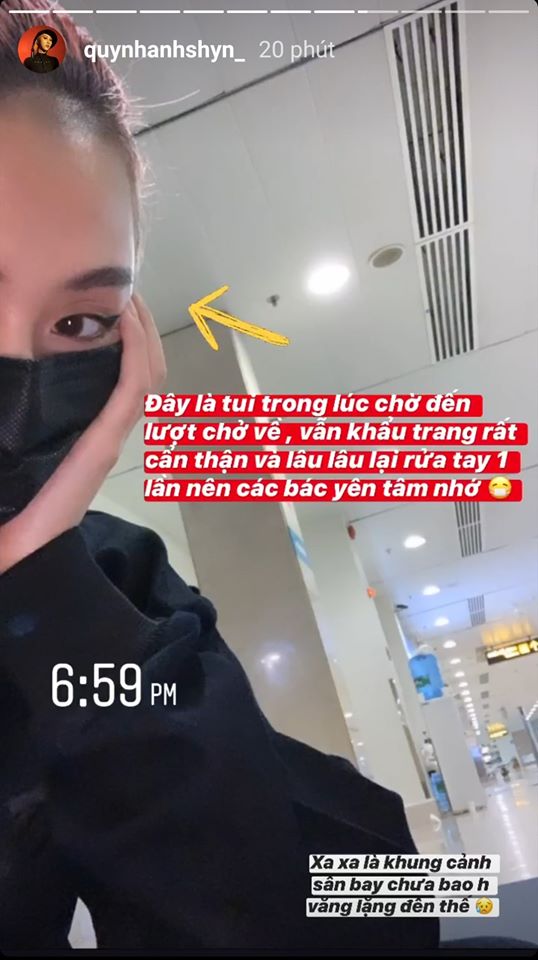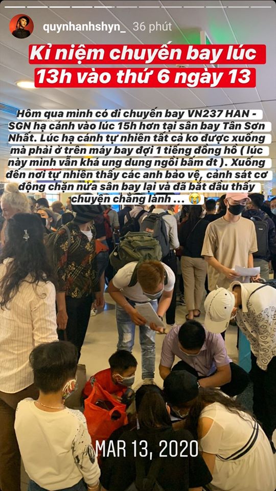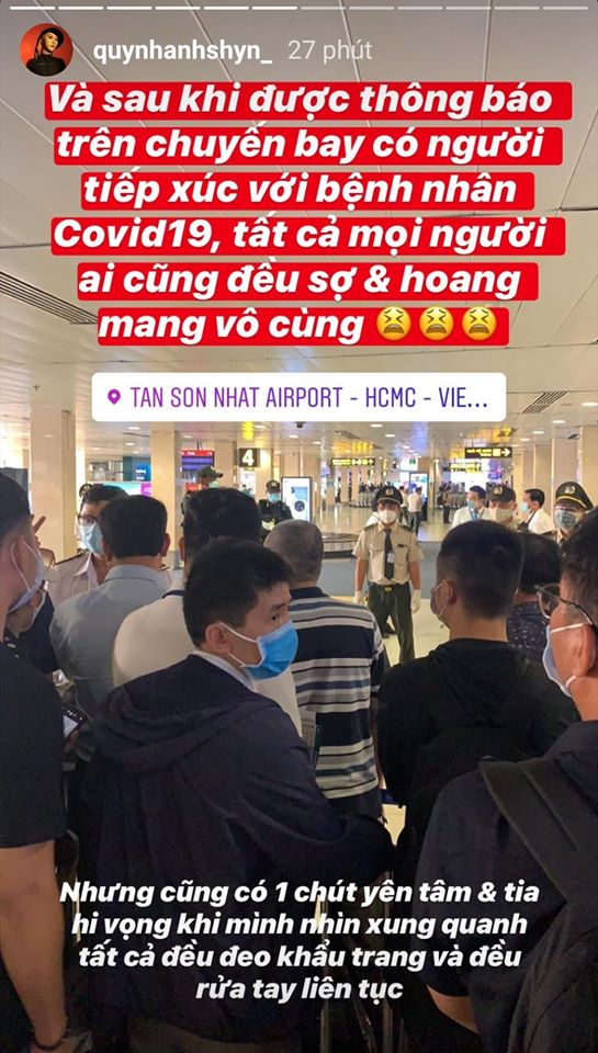 Cụ thể, vào ngày 13/3, Quỳnh Anh Shyn đã bay chuyến từ Hà Nội đến Sài Gòn nhưng không may trên chuyến bay đó lại có một người từng tiếp xúc với bệnh nhân nhiễm Covid-19. Vì vậy ngay khi vừa hạ cánh, tất cả các hành khách trên chuyến bay đều phải đến trạm y tế cách ly và chờ đợi kết quả xét nghiệm từ hành khách đó.