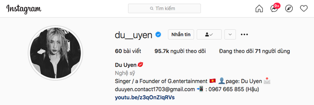 Và điều hiển nhiên là cứ có drama hay phốt thì Facebook, Instagram lại tăng tương tác rất nhanh chóng. Tài khoản Instagram cá nhân của Du Uyên là du__uyen đã tăng hơn 30.000 follower, hiện đang có 95,7K người theo dõi.