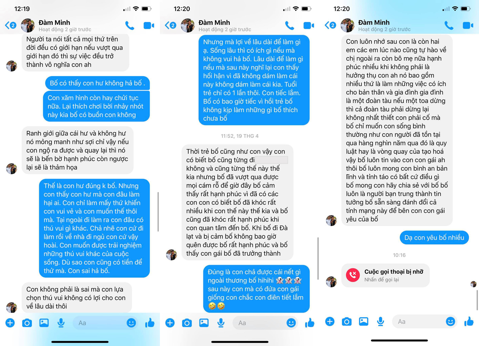 Cách đây ít giờ, Linh Ngọc Đàm vừa chia sẻ trên trang cá nhân những bức hình chụp đoạn tin nhắn của cô nàng với bố. Đáng chú ý, nữ streamer đã thẳng thắn hỏi bố rằng: "Bố có thấy con hư không hả bố? Con xăm hình còn hay chửi tục nữa. Lại thích chơi bời nhảy nhót này kia bố có buồn không?".