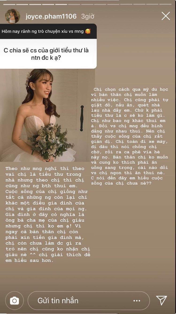 Ái nữ nhà Minh Nhựa cũng trải lòng rất nhiều trước câu hỏi về "cuộc sống của giới tiểu thư".