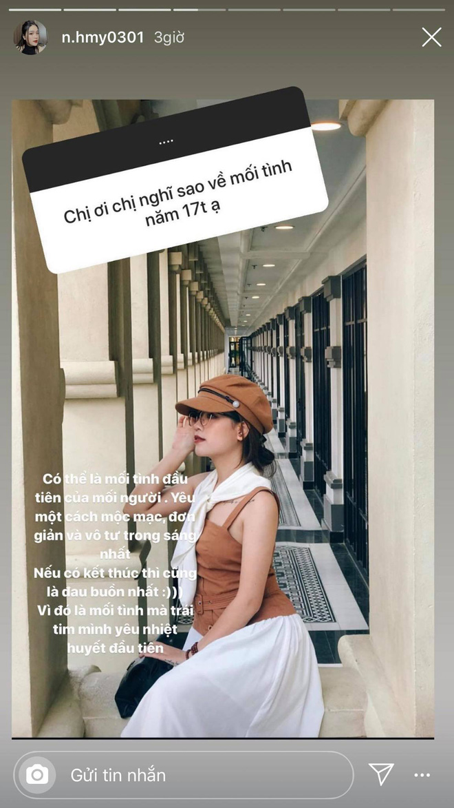 Mặc dù vậy, khi mở "tổng đài tư vấn tình cảm" cho cư dân mạng trên instagram cá nhân, Huyền My lại gây chú ý bằng phát biểu về mối quan hệ mập mờ. Theo đó, cô nàng khẳng định: "Đã mập mờ không rõ ràng thì dĩ nhiên là nó sẽ không có kết quả như mình mong đợi. Thế nên dứt khoát buông bản thân mình ra luôn đi. Càng lâu càng hay suy nghĩ về nó. Không xứng!".