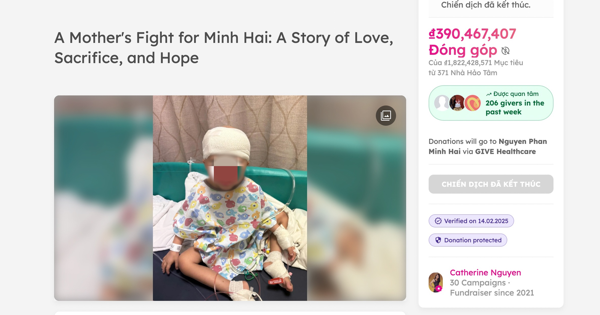 Chúng tôi gửi kèm những bức ảnh và video được chụp vào hôm nay, ngày 25-2-2025, để cập nhật tình hình tiến triển đầy khích lệ của bé. Trước sự hồi phục khả quan này, mẹ của Minh Hải thông báo rằng không cần tiếp tục kêu gọi quyên góp nữa…".