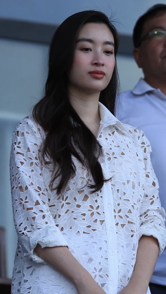 Đỗ Mỹ Linh cùng chồng chủ tịch CLB Hà Nội vừa có mặt trên sân Quy Nhơn theo dõi trận đấu giữa đội chủ nhà Bình Định tiếp đón Hà Nội vòng 24 V.League. Đáng chú ý là sự xuất hiện của hoa hậu Đỗ Mỹ Linh. Tuy nhiên, cô nàng diện áo thêu trắng, mẫu áo này là dạng rỗng thủng lỗ nên gây ra tranh cãi.