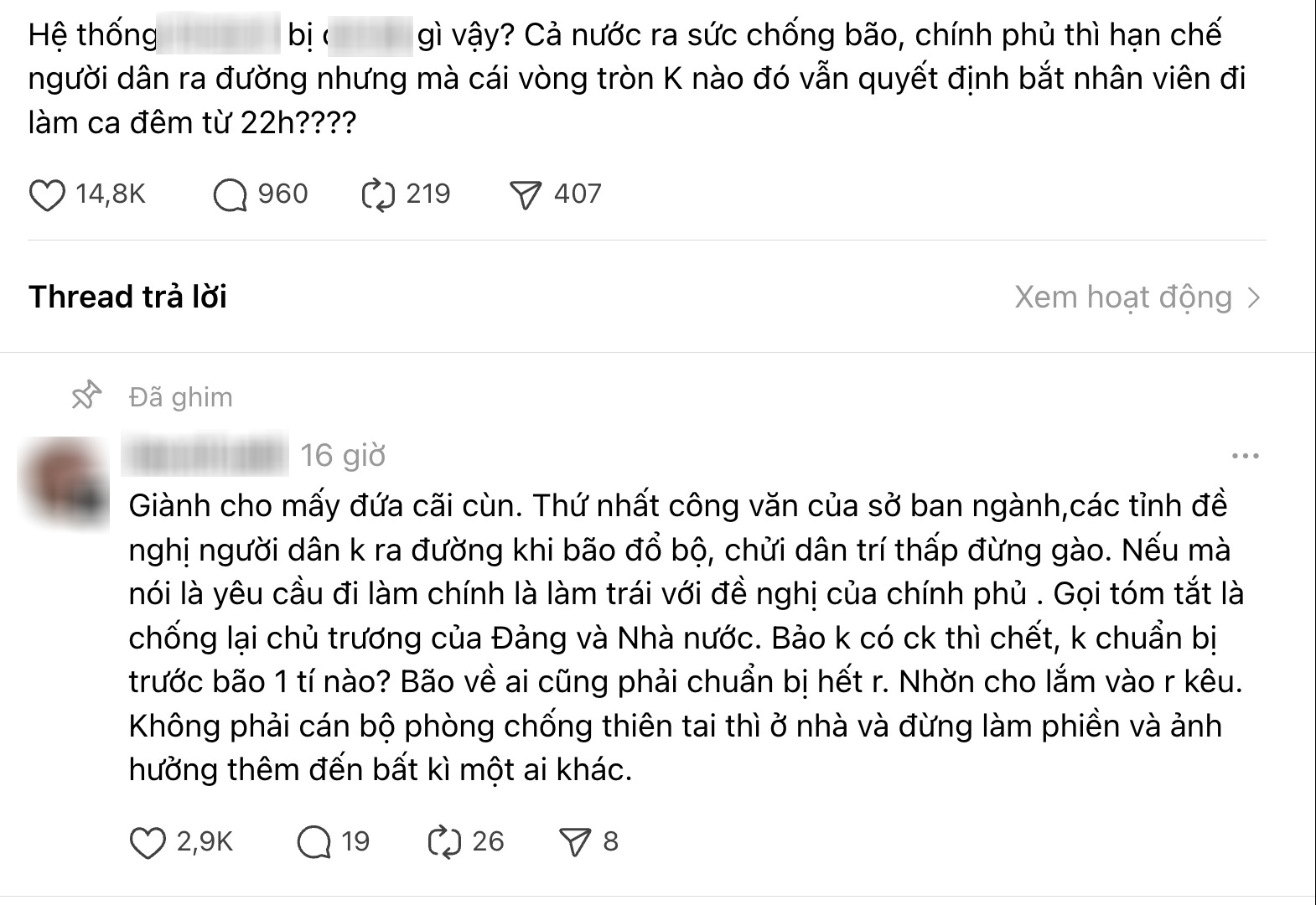 Rất nhiều những câu chuyện đã được phản ảnh trên Thread, đa số bình luận thể hiện sự không đồng tình và thậm chí bức xúc với việc công ty bắt nhân viên đi làm ngày bão.