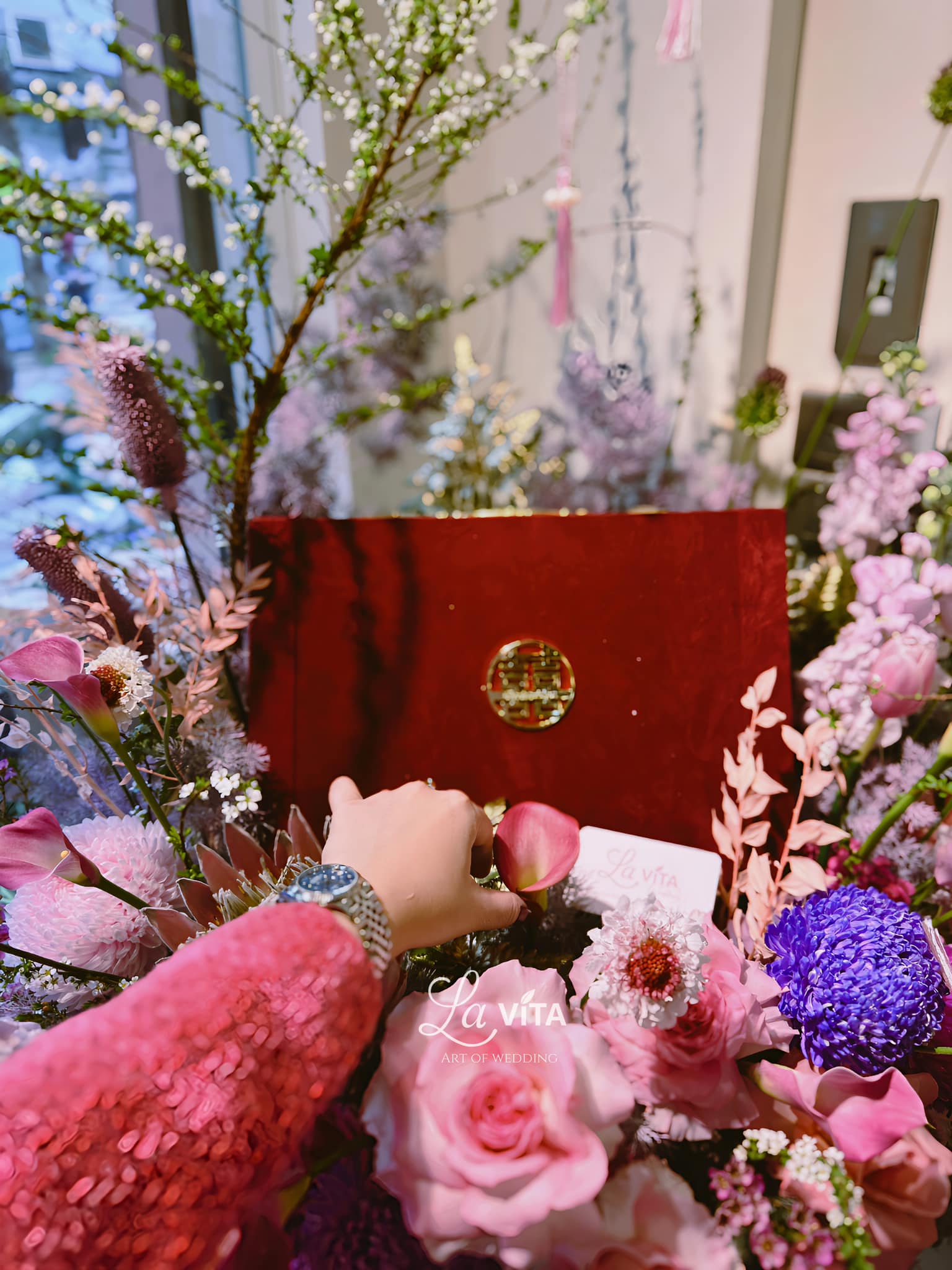 Đặc biệt, còn có một tráp vali nhung màu đỏ, là món quà bí mật mà chú rể Quang Hải muốn dành tặng cho cô dâu của mình.