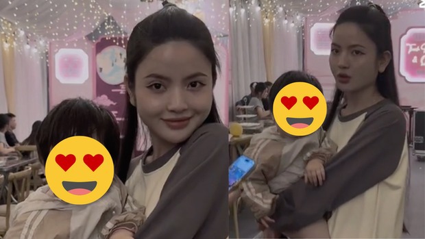 Vào tối 31/12, vợ Quang Hải cũng lộ diện tại rạp đám hỏi ở quê nhà - Sơn Tây chơi đùa cùng cháu và chào hỏi mọi người. Trong khoảnh khắc này, cô nàng ăn mặc đơn giản, diện mạo mộc mạc và xinh xắn.