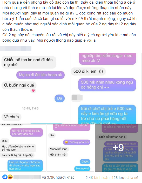 Kèm chính là những dòng tin nhắn mà bạn trai của cô nhắn tin cho một người chị. Khi đó rõ ràng là đang có người yêu nhưng chàng trai sẵn sàng đưa ra những lời bông đùa, xưng hô "bố, mẹ" với người phụ nữ khác.