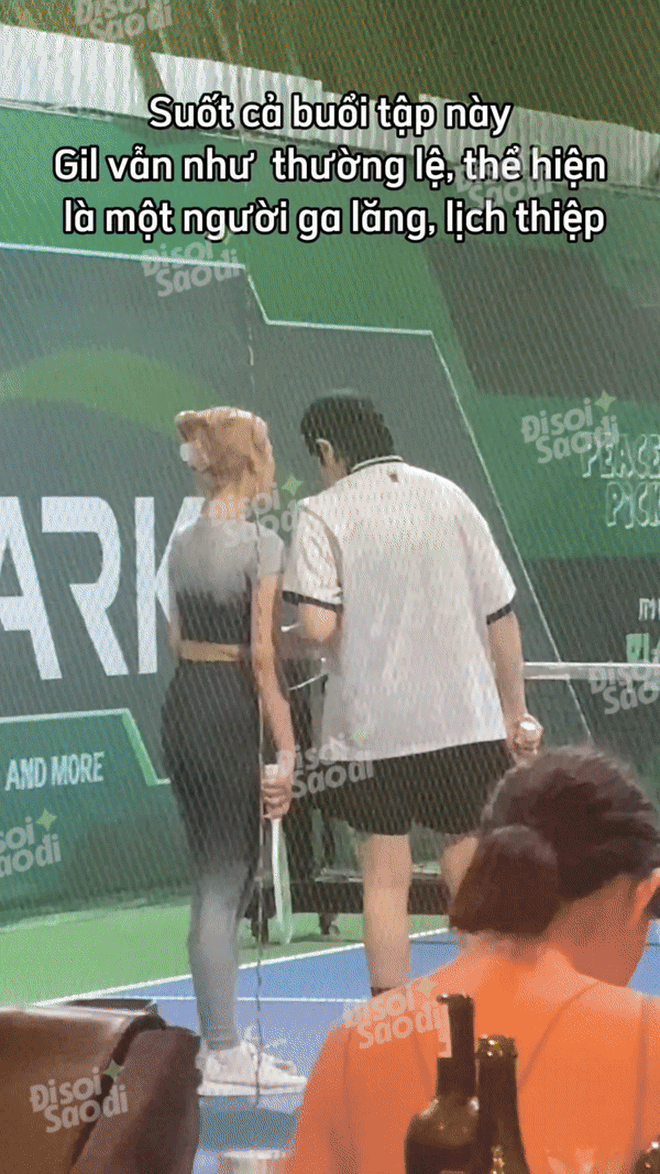 Cụ thể vào ngày 4/8, chúng tôi bắt gặp Gil Lê và Xoài Non cùng xuất hiện tại một sân tập pickleball tại quận 2 (TP.HCM). Cả hai mặc trang phục thể thao năng động, thoải mái lộ diện giữa đám đông. Suốt buổi, Gil Lê và Xoài Non tập bóng cùng nhau và không ngại dành cho nhau những cử chỉ ngọt ngào dù trên sân bóng có khá đông người.