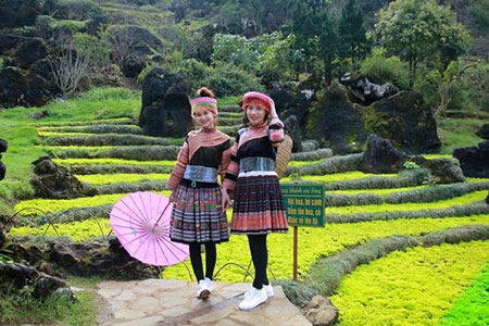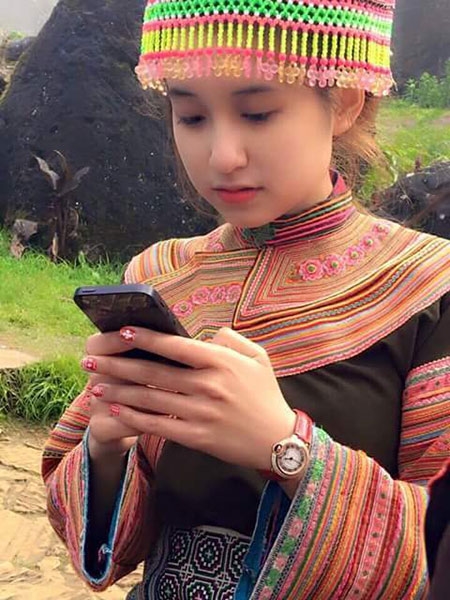“Vẻ đẹp dịu dàng cùng nụ cười rạng ngời tô điểm thêm bởi chiếc răng khểnh cute, khiến cô gái trẻ xinh xắn người dân tộc H’Mông trông rực chói chang, cảm giác như nụ cười cô làm sáng bừng lên những ánh nắng đang bao trùm trên mảnh đất Sapa này vậy”, là một lời khen có cánh của diễn đàn mạng xã hội dành cho nhan sắc của cô gái trẻ.