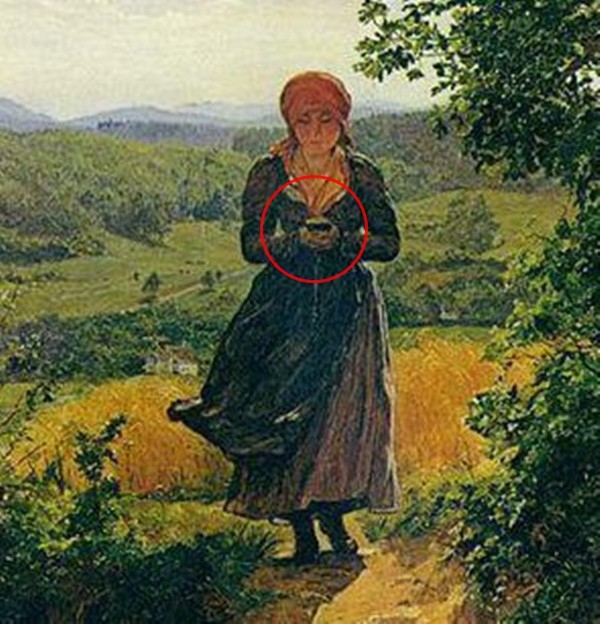 Đáng nói hơn, món đồ cô gái đang cầm kia có hình dạng hệt như chiếc điện thoại thông minh và việc cô cắm đầu vào thiết bị điện tử ấy chính là thực trạng khá phổ biến ở xã hội hiện đại. Theo thông tin thì bức tranh ra đời vào khoảng năm 1850, thời điểm điện thoại thậm chí còn chưa xuất hiện trong trí tưởng tượng của mọi người, chẳng lẽ họa sĩ Ferdinand đã xuyên không mà trở về quá khứ để hoàn thành tác phẩm của mình?