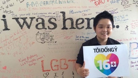 Chàng trai chuyển giới (vốn là cô gái Nguyễn Thị Trúc Phương) tại buổi hội thảo những người LGBT. |