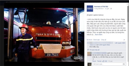 Dù được đăng chưa đến một ngày những bức ảnh đã thu hút gần 5 ngàn lượt like và gần 100 lượt share trên fanpage Humans of Hanoi. Đi cùng với đó là rất nhiều những comment thể hiện sự thích thú, yêu mến dành cho anh lính trong bức ảnh nói riêng cũng như cho nghề cứu hỏa nói chung.