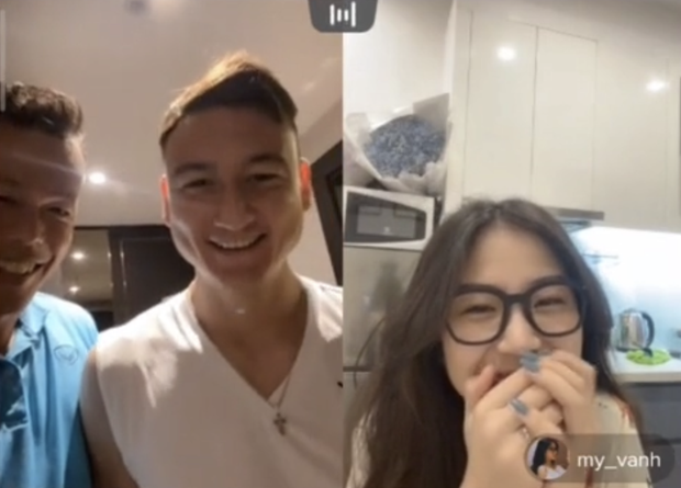 Ngược lại Vân Chòe cũng hỏi thăm ngắn gọn chàng thủ môn và nhận được câu trả lời: "Anh mới ăn tối xong, ăn với anh Trường đó. Giờ anh chuẩn bị đi tập nhá. Bye em nhá".