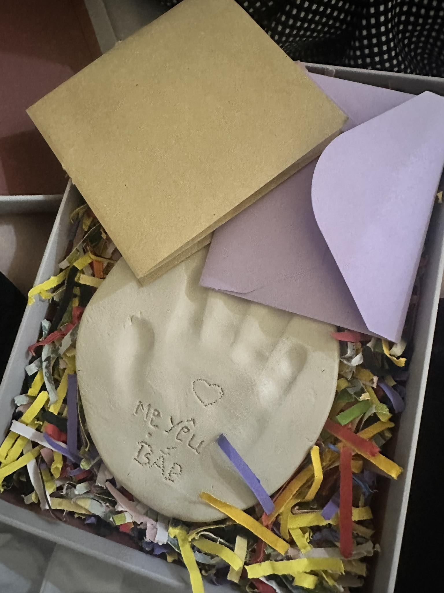 Ngoài ra một người thân của Thu Hoà đăng ảnh hộp quà đựng miếng đất sét có in hình bàn tay cùng dòng chữ: “Mẹ yêu Bắp”. Mẹ Bắp từng chia sẻ khoảnh khắc lấy dấu bàn tay này ở bệnh viện Singapore vào ngày 22/2.