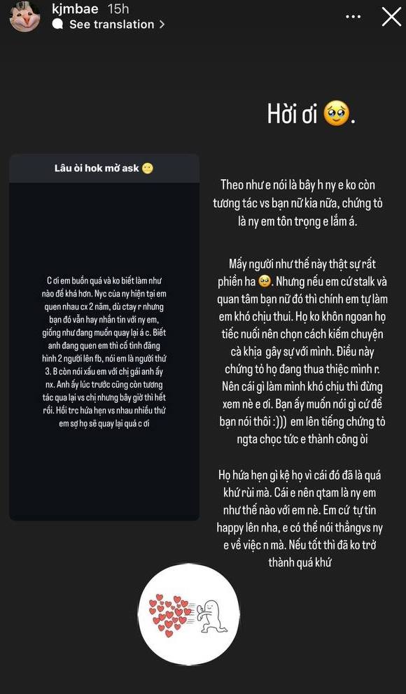 “Họ hứa hẹn gì kệ họ vì đã là quá khứ rồi mà. Cái cần quan tâm là người yêu như thế nào với mình. Em cứ tự tin vui vẻ lên nha, có thể nói thẳng với người yêu về việc này. Nếu tốt thì đã không trở thành quá khứ", bạn gái HIEUTHUHAI dành lời khuyên cho fan.