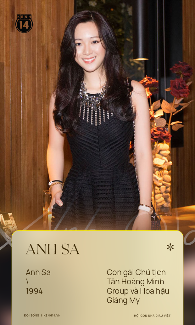 Anh Sa - con gái út Chủ tịch HĐQT Tân Hoàng Minh Group và Hoa hậu Giáng My chính là đại diện cho phe rich kid kín tiếng. Cô nàng cực kì ít khi xuất hiện trên cả MXH lẫn trước truyền thông, đa phần những bức hình của Anh Sa đều do mẹ chia sẻ.