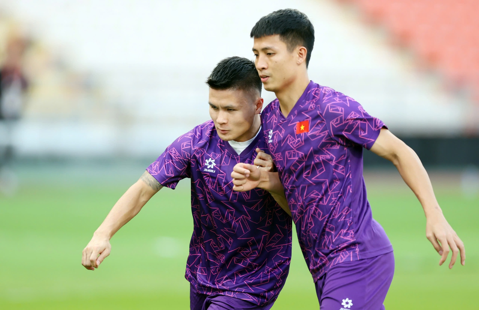 Cùng ngày 4/1, đội tuyển Việt Nam có buổi tập tại sân vận động Rajamangala (Bangkok). Đây cũng là nơi diễn ra trận đấu chung kết AFF Cup 2024 ngày 5/1. Trong buổi tập, ban huấn luyện chia các cầu thủ thành nhóm nhỏ, thực hiện các bài tập kỹ thuật cơ bản như chuyền bóng, xử lý tình huống và di chuyển.