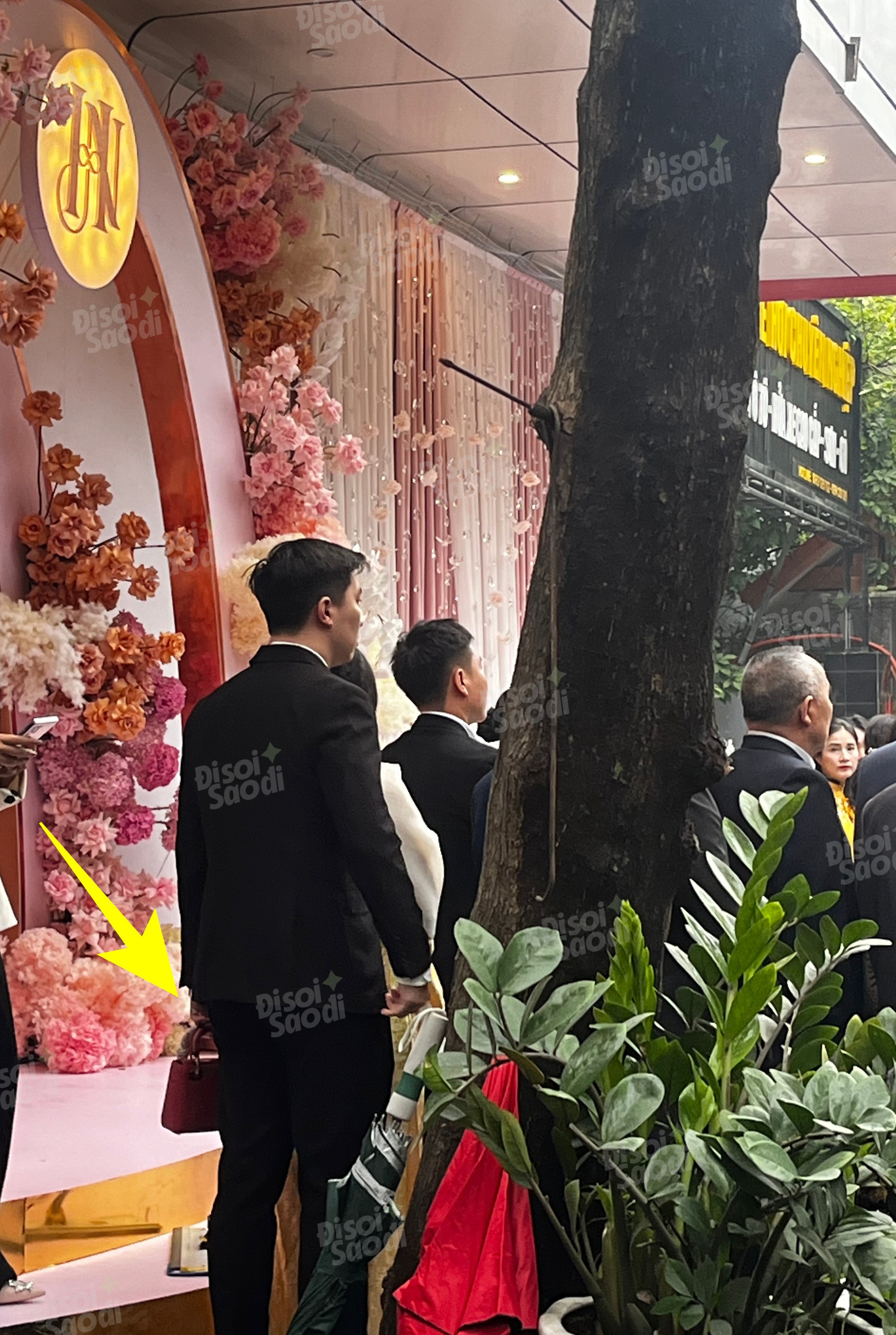 Trong suốt thời gian diễn ra buổi lễ, Ngọc Sơn đều xách túi, chỉnh tóc cho vợ. Chỉ cần nhìn thoáng qua, nhiều người cũng đã có nhận xét anh trai Phương Nhi là một người tình cảm, rất cưng chiều và “nghiện vợ”.