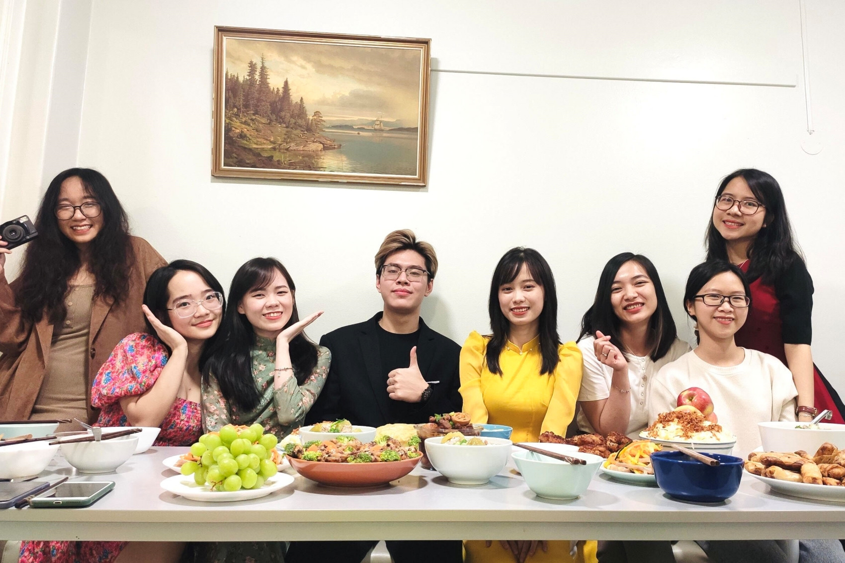 Giao thừa năm nay, Hậu còn cùng các bạn trong Hội sinh viên Việt Nam ở Na Uy tụ tập nấu mâm cỗ Tết truyền thống, lì xì nhau và cùng hát karaoke. Vào ngày đầu năm, cả nhóm sẽ đi chùa ở Na Uy để cầu cho một năm vạn sự như ý.