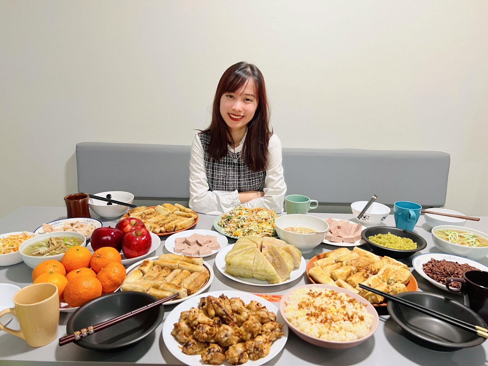 “Tuy nhiên, em may mắn vì gặp được những người bạn đồng hương. Chúng em cùng nhau tụ tập nấu mâm cỗ Tết truyền thống và đón khoảnh khắc giao thừa”. Theo Hậu, đây là trải nghiệm thú vị vì các bạn đều đến từ các vùng miền khác nhau của Việt Nam. Vì thế, mâm cỗ Tết của cả nhóm cũng có đủ các món ăn đặc trưng của cả ba miền.
